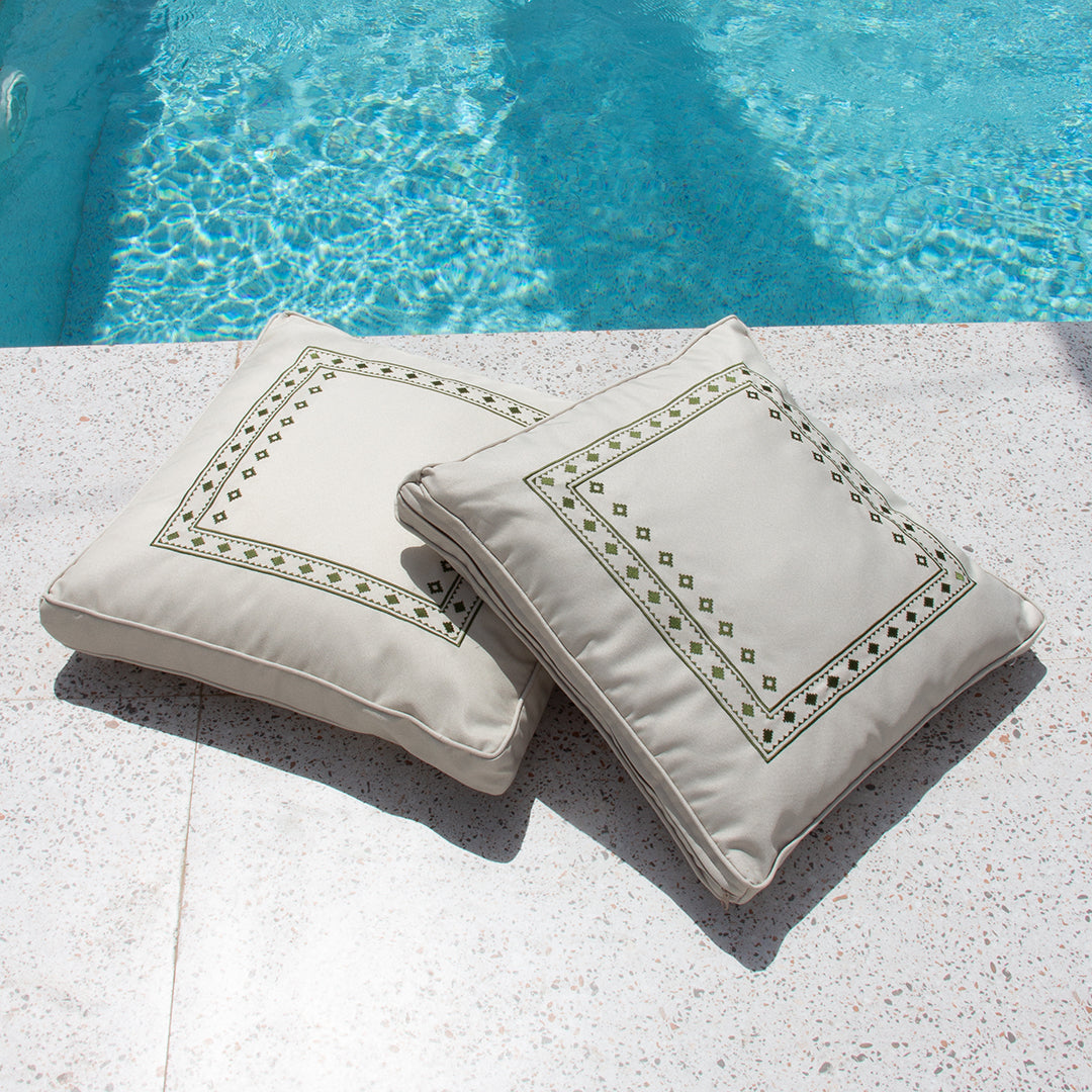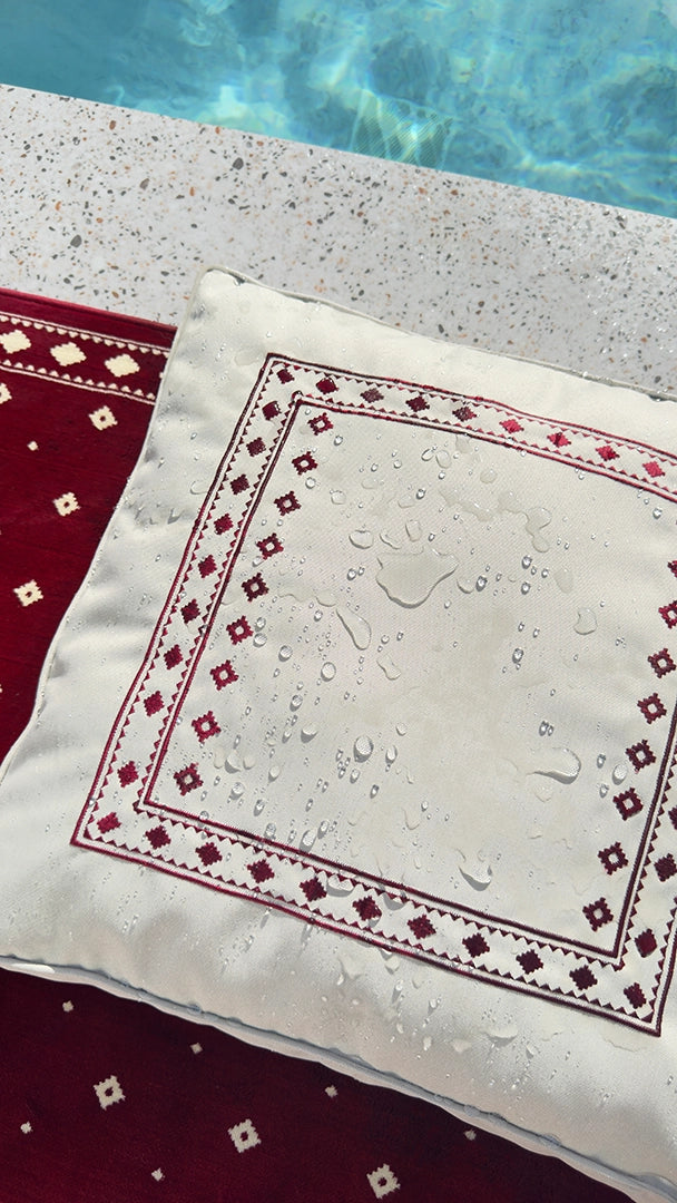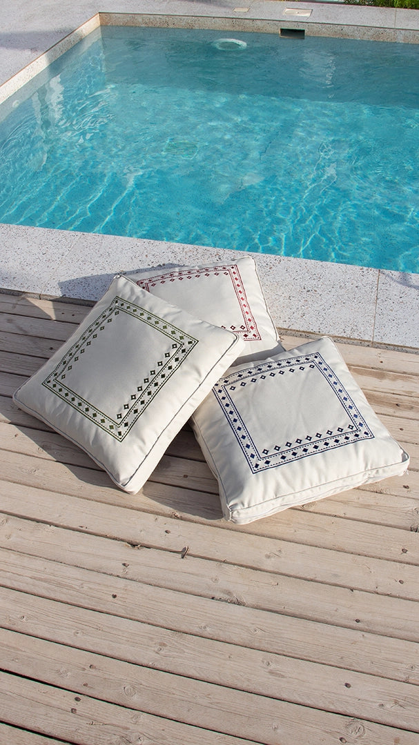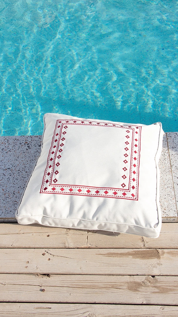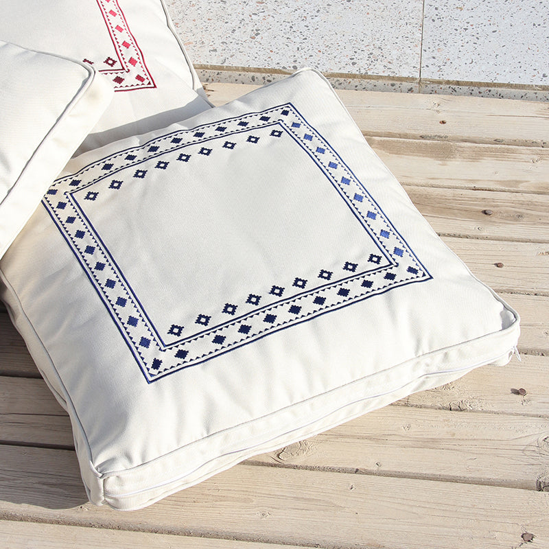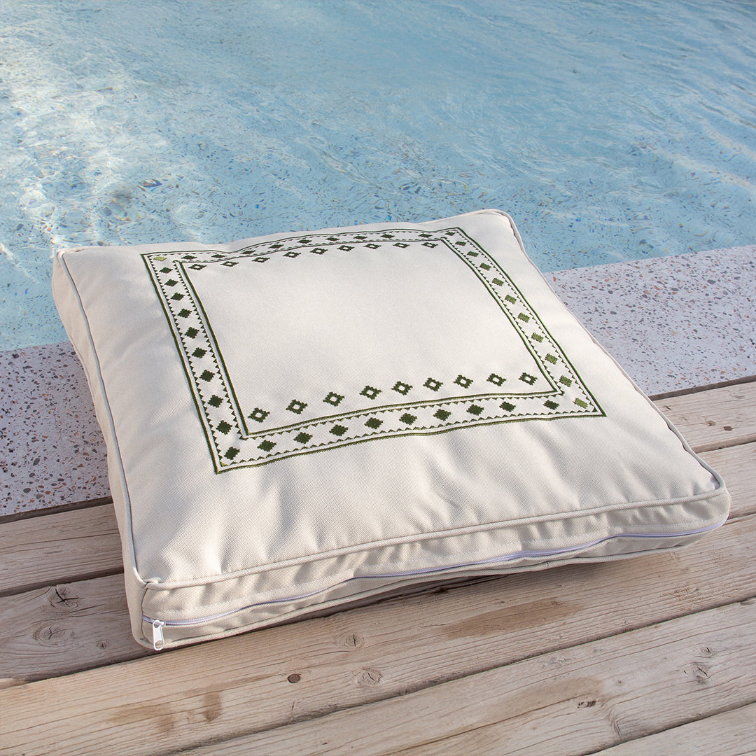 كوشية ارضية مطرزة مصنوعة من نسيج عالي الجودة ضد السوائل ملمس ناعم. تم تصميمها بسحاب مخفي مع غطاء قابل للتبديل وسهل التنظيف