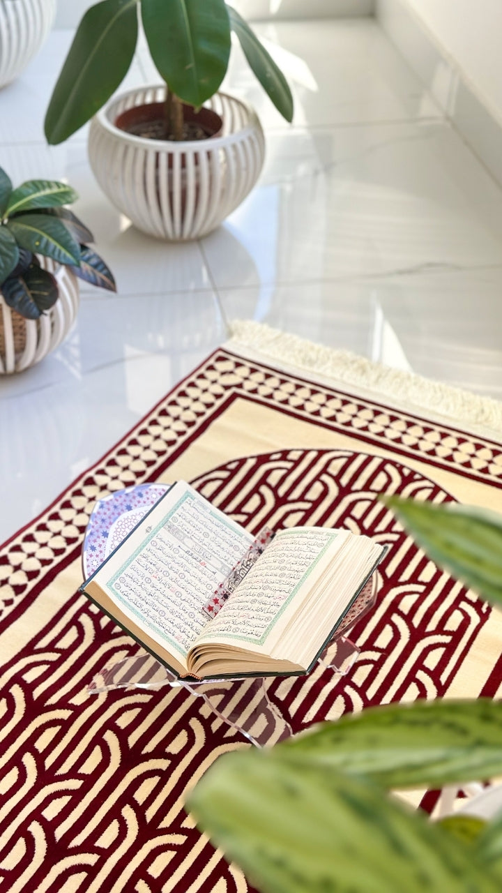 سجادة صلاة فردية مصممة بعناية فائقة لتمنحك الراحة أثناء الصلاة وتضفي لمسة فاخرة على المكان .