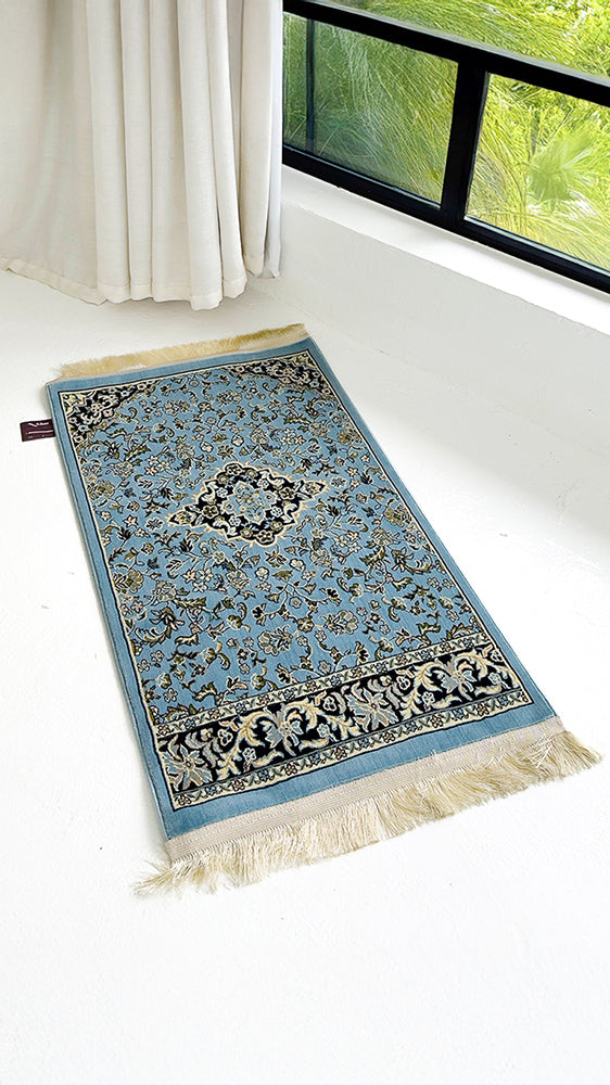 سجادة صلاة فردية بنقوش مستوحاة من سجاد الحرمين الشريفين والروضة الشريفة مصممة بعناية فائقة لتمنحك الراحة أثناء الصلاة مصنوعة بأعلى مواصفات الجودة في المملكة العربية السعودية